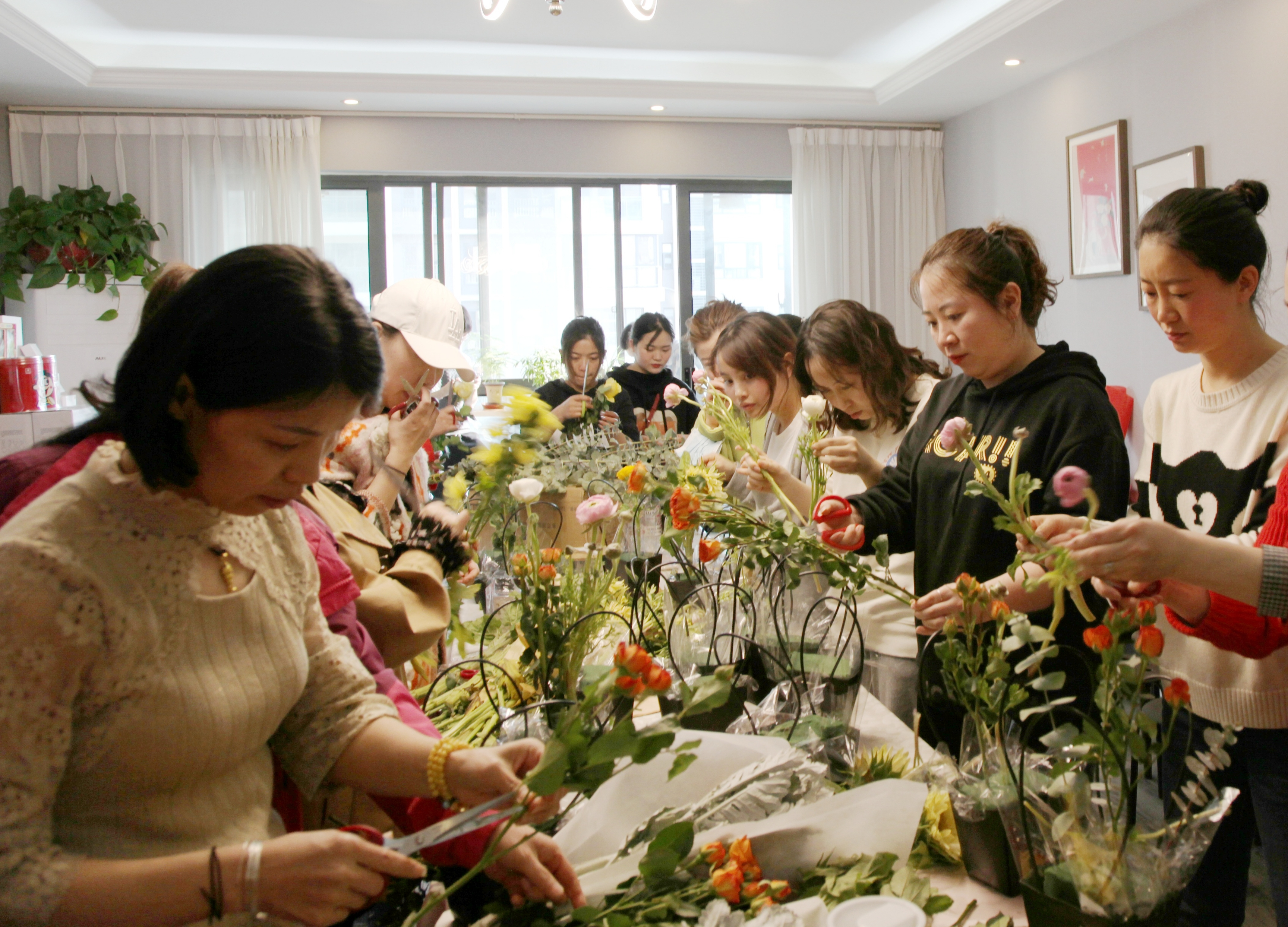 隨后女職工們充分發(fā)揮想象力和創(chuàng)造力,精心選配鮮花、修剪枝葉、整理花朵,一盆盆錯(cuò)落有致、色彩鮮艷、造型別致的插花作品相繼出爐,活動(dòng)現(xiàn)場花香四溢、歡聲笑語、其樂融融。