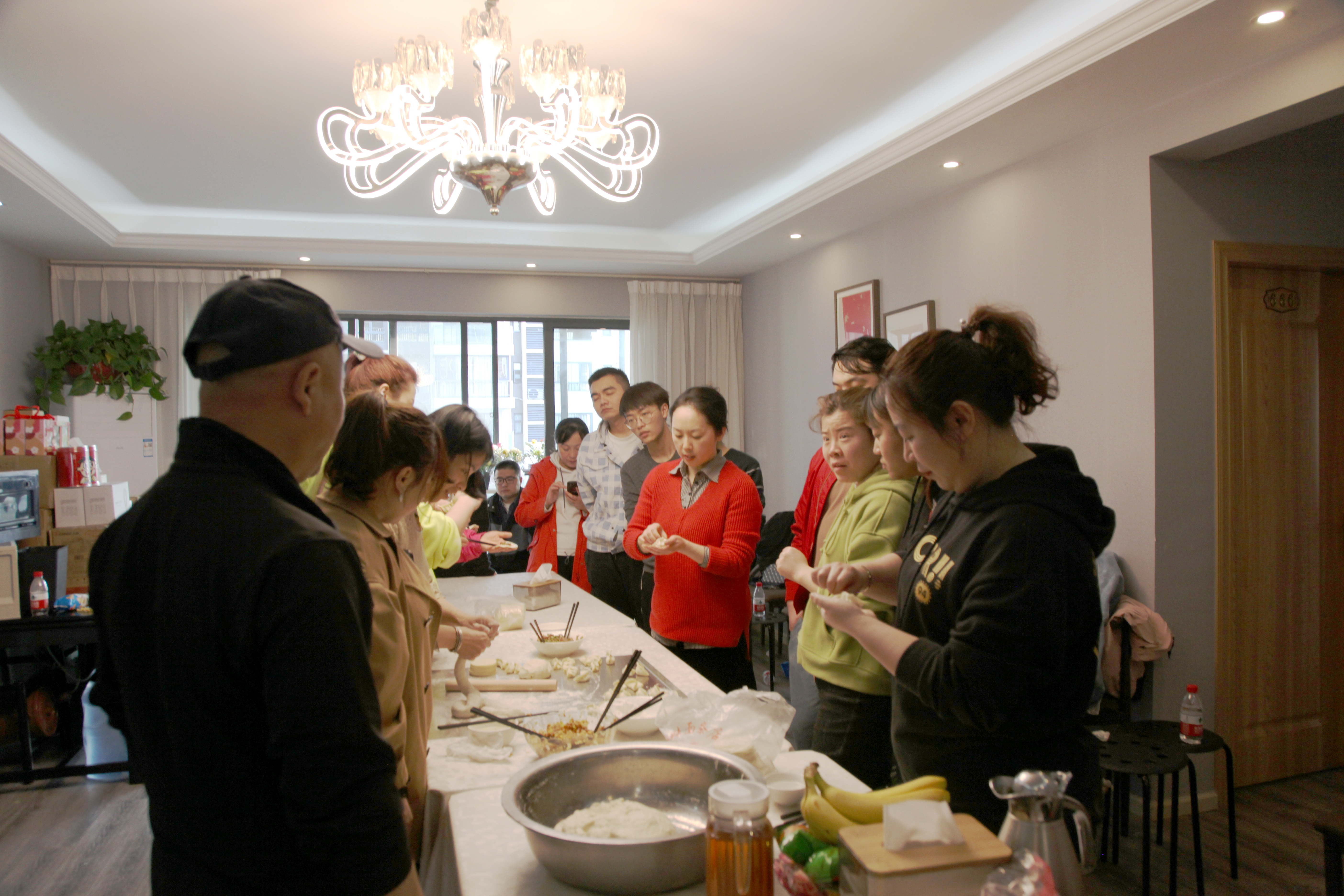 活動(dòng)的最后,所有職工分工協(xié)作,搟皮、和餡、包餃子,只見大家熱情高漲,各顯身手,一邊切磋技藝,一邊交流經(jīng)驗(yàn),十指合攏一捏,一個(gè)個(gè)形態(tài)各異的餃子就成型了。